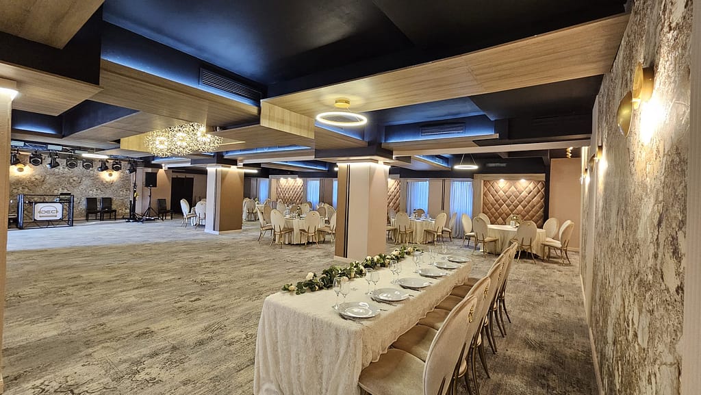 Restaurant Noblesse Craiova este locul ideal pentru evenimente speciale, oferind un ambient elegant și servicii personalizate. Organizăm nunți, botezuri și petreceri private cu un accent pe detalii. Potrivit pentru evenimente între 50 și 150 de persoane.